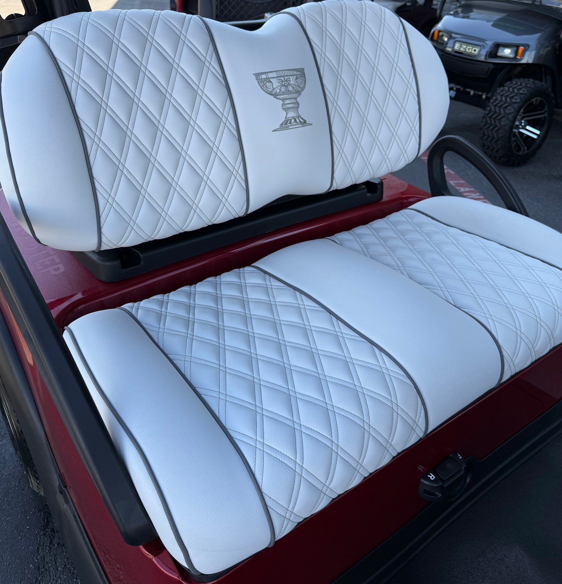 - Premium Club Car Custom White Diamond Stitched Seats